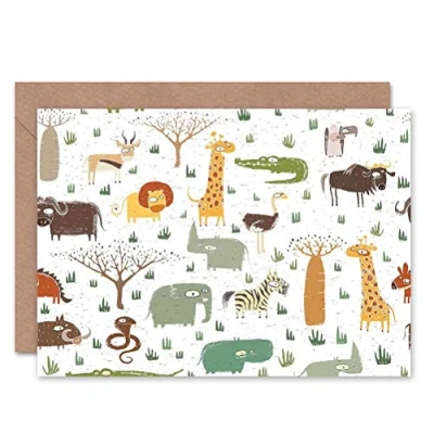 Wee Blue Coo PAINTING ILLUSTRATION ABSTRACT AFRICAN ANIMALS COLLAGE GREETINGS CARD