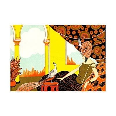 Wee Blue Coo Painting Illustration Advert Red Star Deco Peacock Woman Wall Art Print