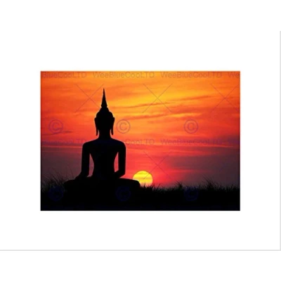Wee Blue Coo Painting Illustration Buddha Silhouette Sunset Sky Wall Art Print
