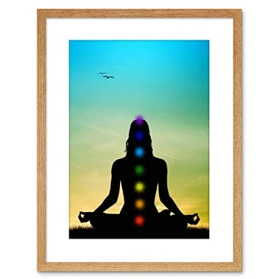 Wee Blue Coo PAINTING ILLUSTRATION BUDDHIST LOTUS CHAKRAS MEDITATION FRAMED PRINT F97X4661