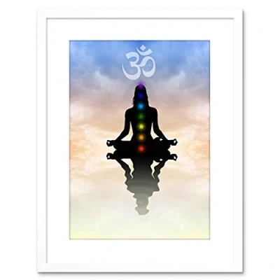 Wee Blue Coo Painting Illustration Buddhist Lotus Chakras Peace Symbol Framed Wall Art Print