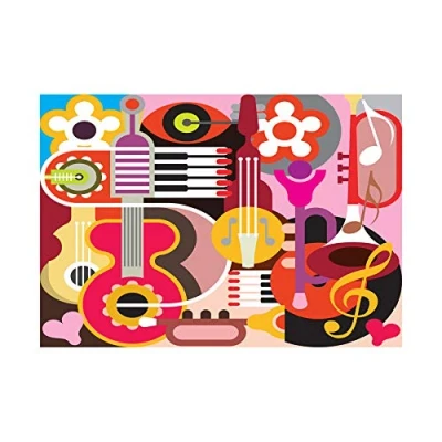 Wee Blue Coo Painting Illustration Cartoon Musical Instruments Collage Wall Art Print