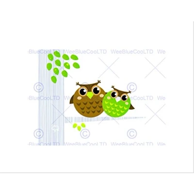 Wee Blue Coo PAINTING ILLUSTRATION CARTOON OWLS TREE LEAVE BLACK FRAMED ART PRINT B12X12909