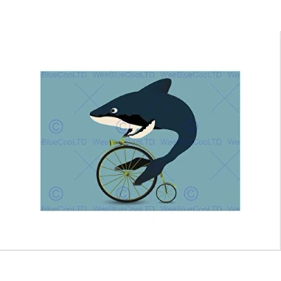 Wee Blue Coo PAINTING ILLUSTRATION CARTOON SHARK PENNY FARTHING FRAMED ART PRINT B12X12911