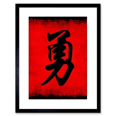 Wee Blue Coo PAINTING ILLUSTRATION CHINESE CALLIGRAPHY COURAGE SYMBOL FRAMED PRINT F97X4676