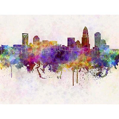 Wee Blue Coo Painting Illustration Cityscape Charlotte Skyline Paint Splash Art Print Poster Wall Decor 12X16 Inch