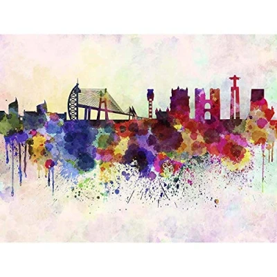 Wee Blue Coo Painting Illustration Cityscape Paint Splash Skyline Lisbon Art Print Poster Wall Decor 12X16 Inch