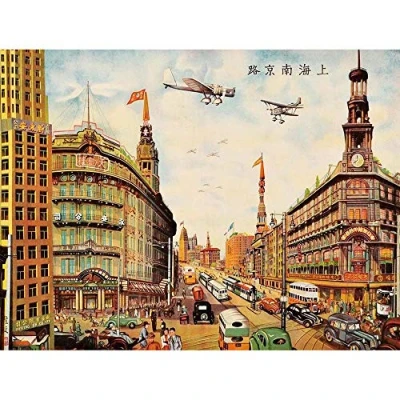 Wee Blue Coo Painting Illustration Cityscape Shanghai China Traffic Street Bus Art Print Poster Wall Decor 12X16 Inch