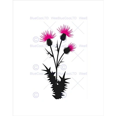 Wee Blue Coo Painting Illustration Drawing Thistle Flower Scotland Wall Art Print