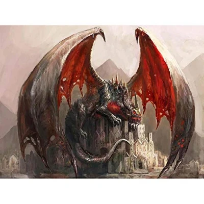 Wee Blue Coo Painting Illustration Fantasy Dragon Castle Wings Art Print Poster Wall Decor 12X16 Inch