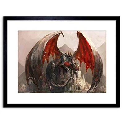 Wee Blue Coo Painting Illustration Fantasy Dragon Castle Wings Framed Wall Art Print