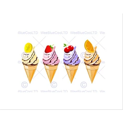 Wee Blue Coo PAINTING ILLUSTRATION FOUR FRUIT ICE CREAM CONE FRAMED ART PRINT MOUNT B12X12928