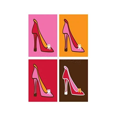 Wee Blue Coo Painting Illustration Four High Heel Stiletto Shoes Wall Art Print