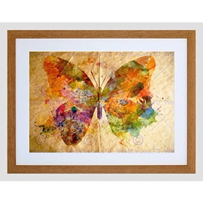 Wee Blue Coo Painting Illustration Grungy Watercolour Butterfly Framed Wall Art Print