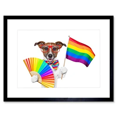 Wee Blue Coo PAINTING ILLUSTRATION JACK RUSSELL DOG GAY PRIDE FLAG FRAMED ART PRINT B12X12934