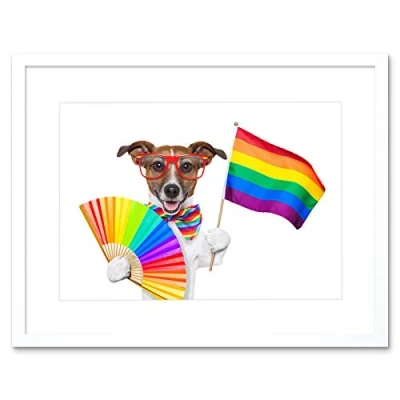 Wee Blue Coo Painting Illustration Jack Russell Dog Gay Pride Flag Framed Wall Art Print