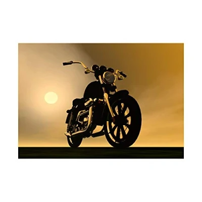 Wee Blue Coo Painting Illustration Motorbike Motorcycle Sun Haze Wall Art Print