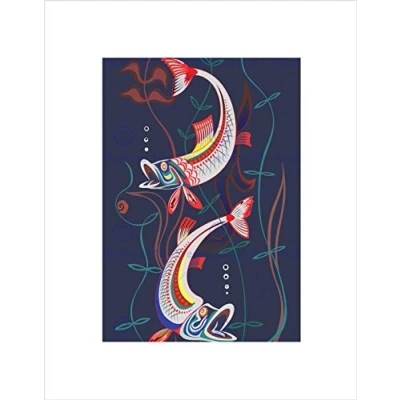 Wee Blue Coo PAINTING ILLUSTRATION ORNATE CARTOON FISH POND WATER FRAMED ART PRINT B12X13604