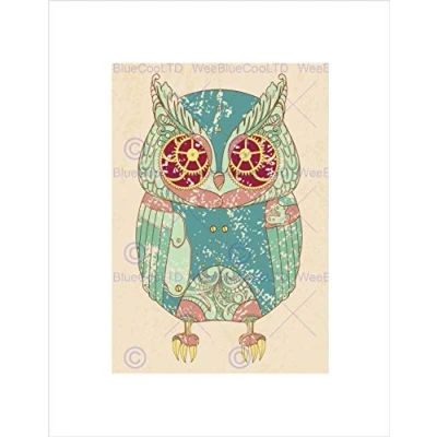 Wee Blue Coo Painting Illustration Ornate Decorative Cartoon Owl Wall Art Print