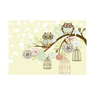 Wee Blue Coo Painting Illustration Ornate Owls Tree Birdcage Wall Art Print