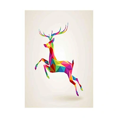 Wee Blue Coo Painting Illustration Running Leaping Deer Polygon Picture Wall Art Print