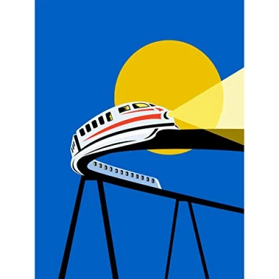 Wee Blue Coo Painting Illustration Transport Monorail Railway Train Sun Canvas Print