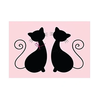 Wee Blue Coo Painting Illustration Two Black Cat Silhouette Shapes Wall Art Print