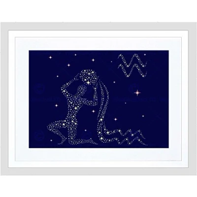 Wee Blue Coo Painting Illustration Zodiac Star Sign Aquarius Water Framed Wall Art Print