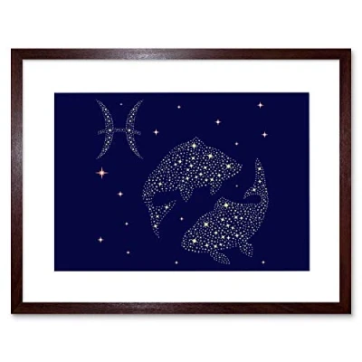 Wee Blue Coo Painting Illustration Zodiac Star Sign Pisces Fish Framed Wall Art Print