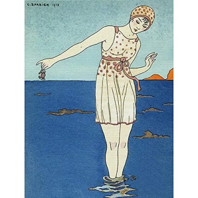 Wee Blue Coo Painting Illustrator French Colourful Barbier Beach Crab Swim Art Print Poster Wall Decor 12X16 Inch