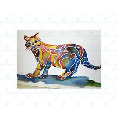 Wee Blue Coo Painting Impression Animal Cat Colourful Wall Art Print