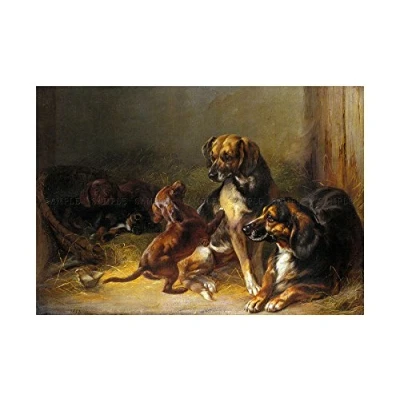 Wee Blue Coo Painting Interior Study Animal Adam Dogs Whelps 12x16 Wall Art Print