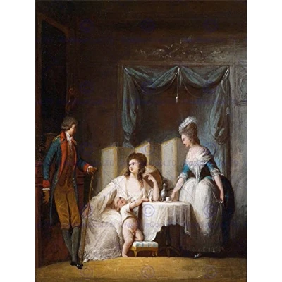 Wee Blue Coo Painting Interior Study Debucourt Informal Visit Wall Art Print
