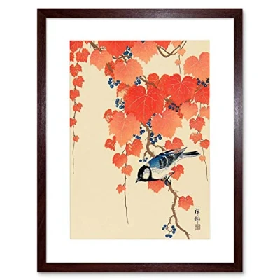 Wee Blue Coo Painting Japan Nature Bird Ivy Berry Shoson Ohara Framed Wall Art Print