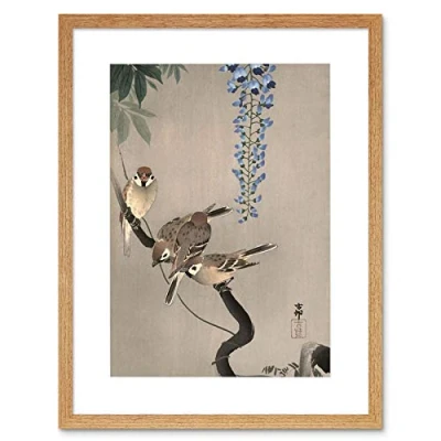 Wee Blue Coo Painting Japan Nature Sparrow Bird Flower Shoson Ohara Framed Wall Art Print