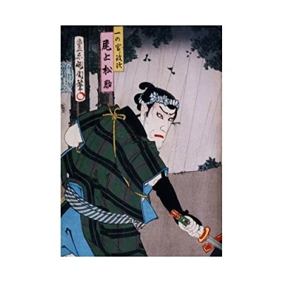 Wee Blue Coo Painting Japan Samurai Sword Kunichika Wall Art Print