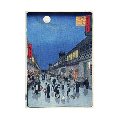 Wee Blue Coo Painting Japan Utagawa Night View Saruwakacho Wall Art Print