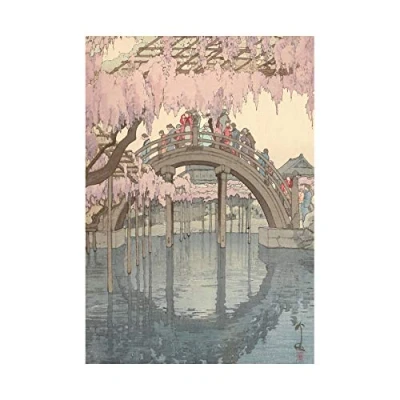 Wee Blue Coo Painting Japanese Garden Bridge Hiroshi Japan Wall Art Print