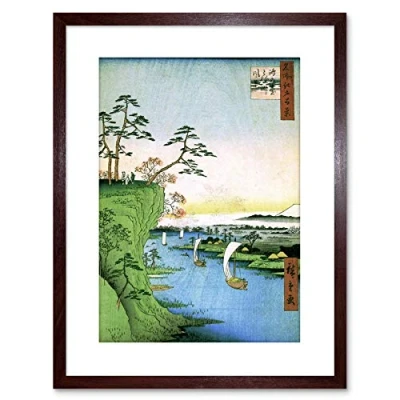 Wee Blue Coo Painting Japanese Woodblock Boats River Cliff Top Framed Wall Art Print