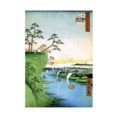Wee Blue Coo Painting Japanese Woodblock Boats River Cliff Top Wall Art Print