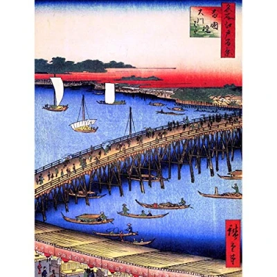 Wee Blue Coo Painting Japanese Woodblock Bridge Over Harbour Art Canvas Print