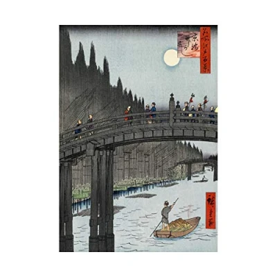 Wee Blue Coo Painting Japanese Woodblock Bridge To Fort Over River Wall Art Print