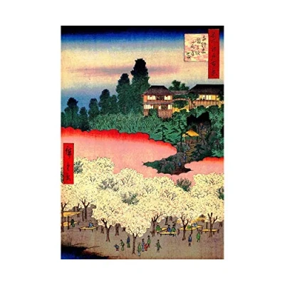 Wee Blue Coo Painting Japanese Woodblock Cherry Blossom Park Wall Art Print