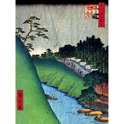 Wee Blue Coo Painting Japanese Woodblock River Mountain Art Large Print Poster Wall Decor 18x24 inch