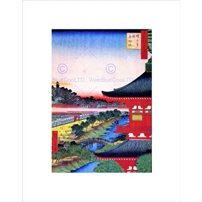 Wee Blue Coo Painting Japanese Woodblock View Pagoda Red Wall Art Print