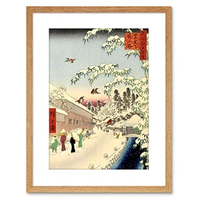 Wee Blue Coo PAINTING JAPANESE WOODBLOCK WINTER STREET FRAMED PRINT F97X4826