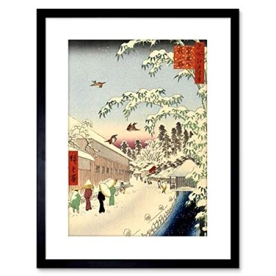 Wee Blue Coo Painting Japanese Woodblock Winter Street Framed Wall Art Print