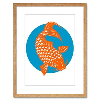 Wee Blue Coo Painting Koi Carp Gold Fish Japanese Scales Tail Fin Framed Wall Art Print