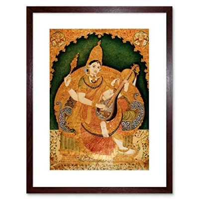 Wee Blue Coo Painting Krishnappa Hindu Goddess Saraswati 12x16 Framed Wall Art Print