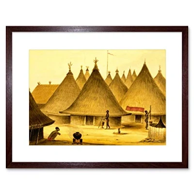 Wee Blue Coo Painting Landscape African Native Village Huts Framed Wall Art Print